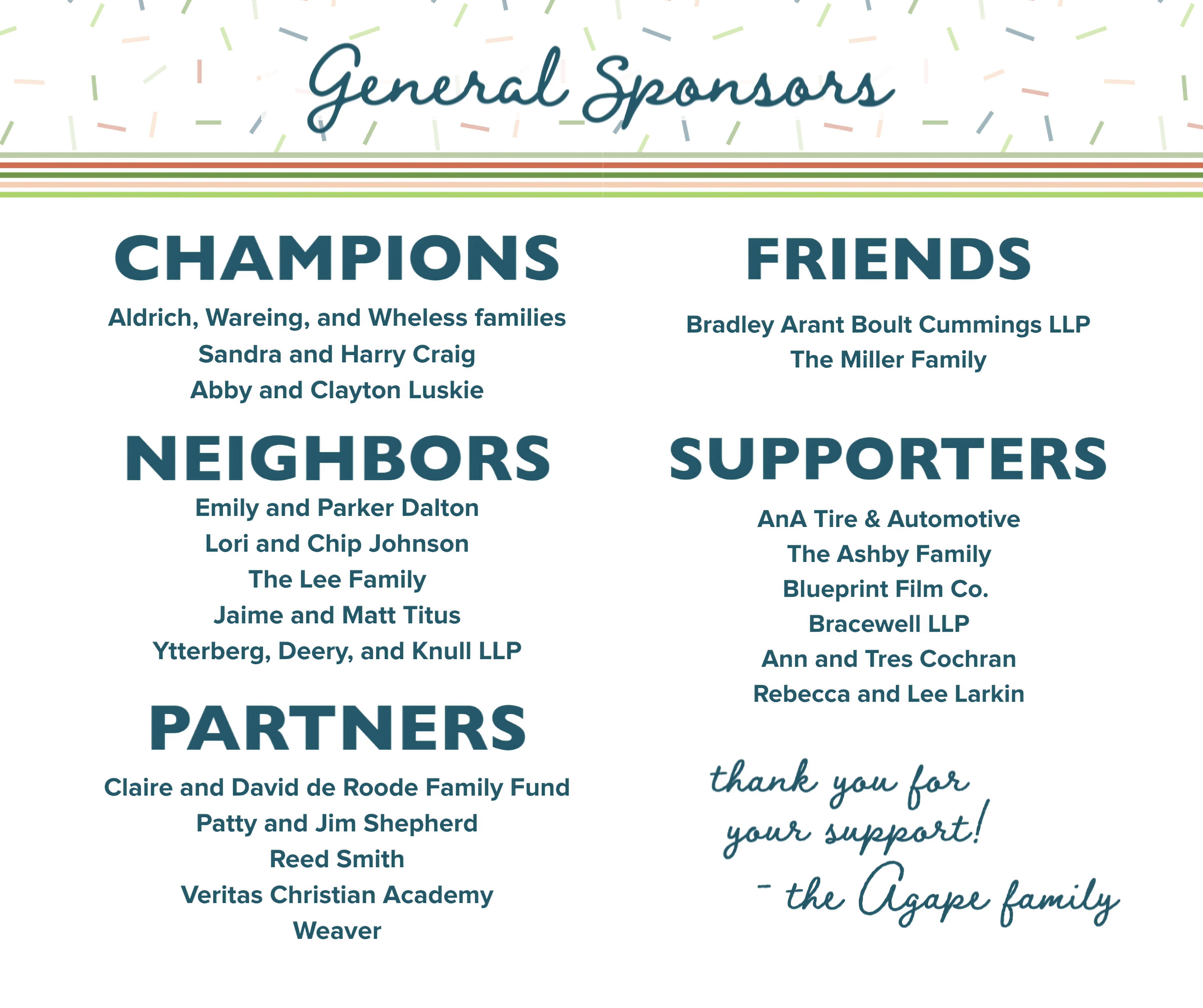 **all sponsorship levels receive recognition in pre- and post-event marketing materials